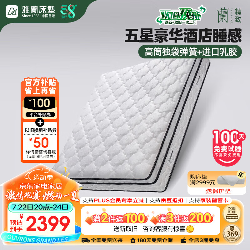 雅兰床垫91%高纯乳胶软硬双面独袋弹簧床垫 金梦豪尊享版 150*190cm价格:2999.00元!