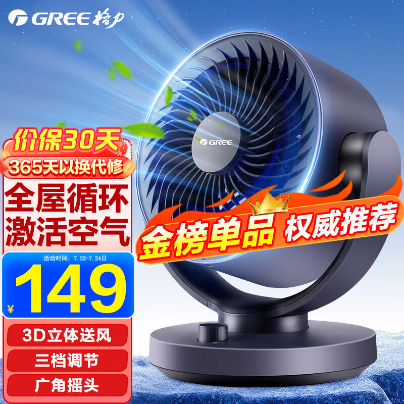 格力(GREE) 空气循环扇台式风扇家用电风扇上下左右摇头小风扇电扇涡轮换气扇循环对流风扇 【金榜单品】6吋机械款FXT-1505g3价格:149.00元!