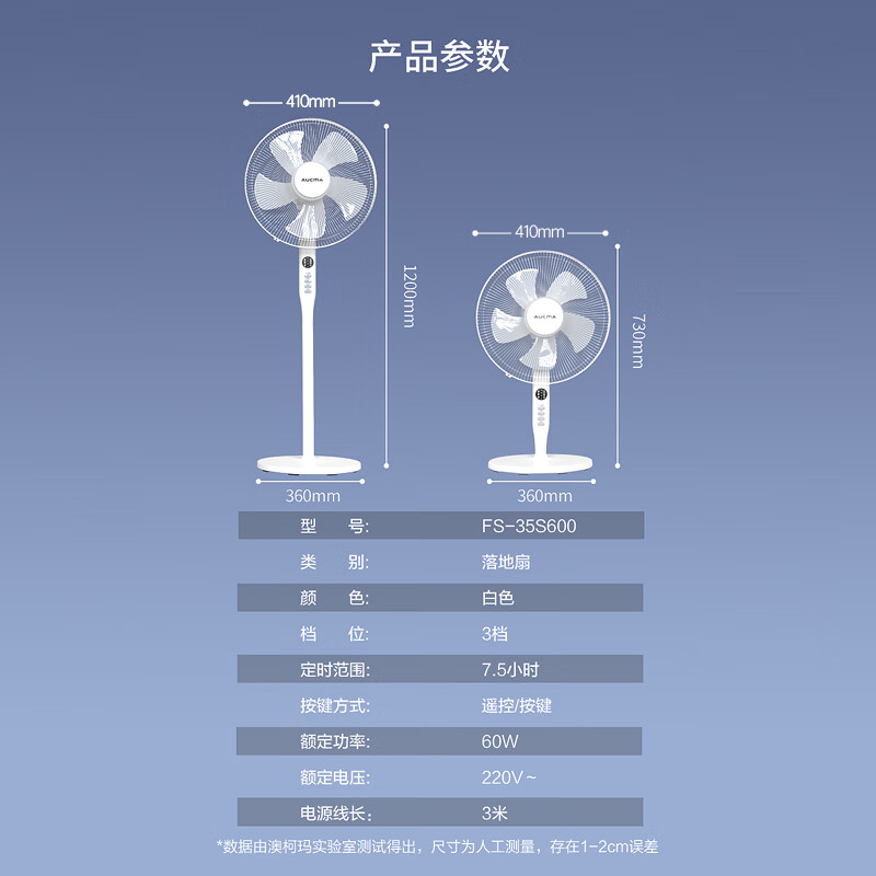 澳柯玛(AUCMA)3米电线遥控落地扇/轻音电风扇/家用办公室风扇/大风量风扇/电子定时/台式扇 FS-35S600价格:139.90元!