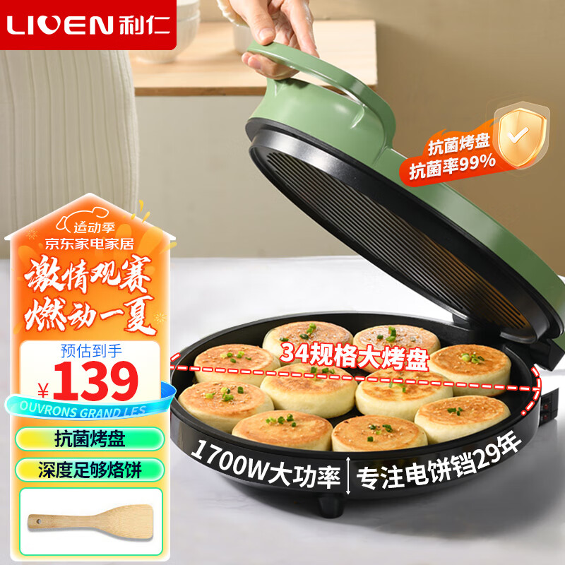 利仁(Liven)电饼铛家用加大加深烤盘双面加热电饼档加多功能煎饼机烙饼锅三明治早餐机电饼锅不粘锅 LR-J3416价格:159.00元!