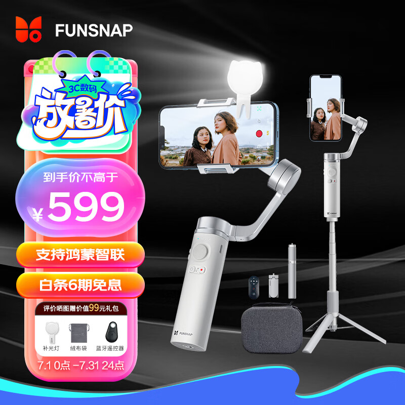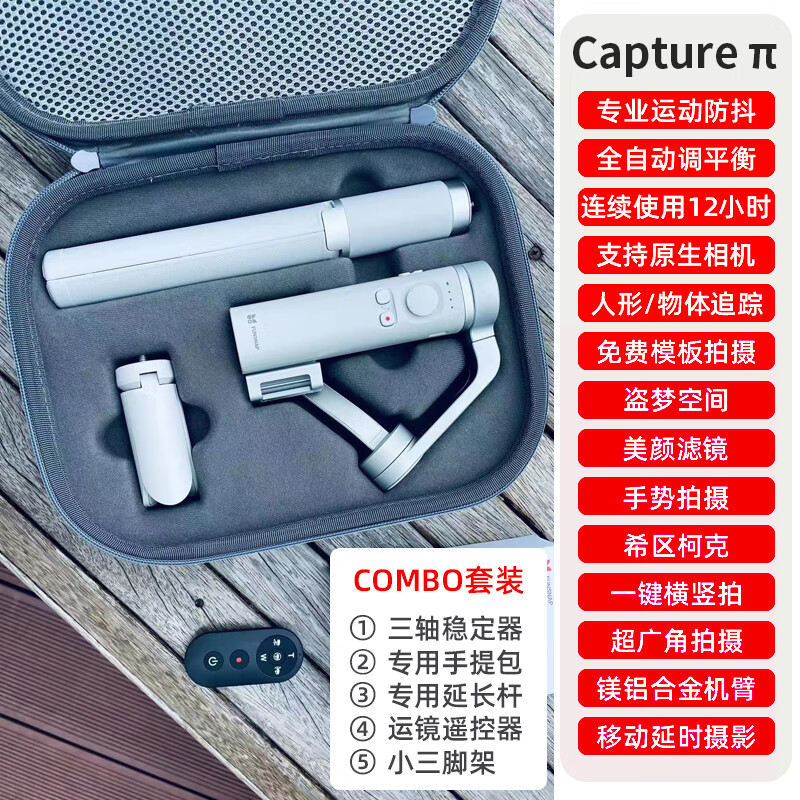 逗映(FUNSNAP)派 手机稳定器 手持云台稳定器 三轴防抖跟拍云台 全域无死角运镜 折叠收纳Combo版价格:599.00元!
