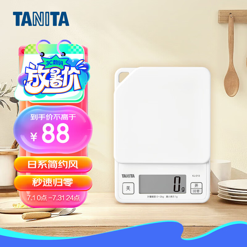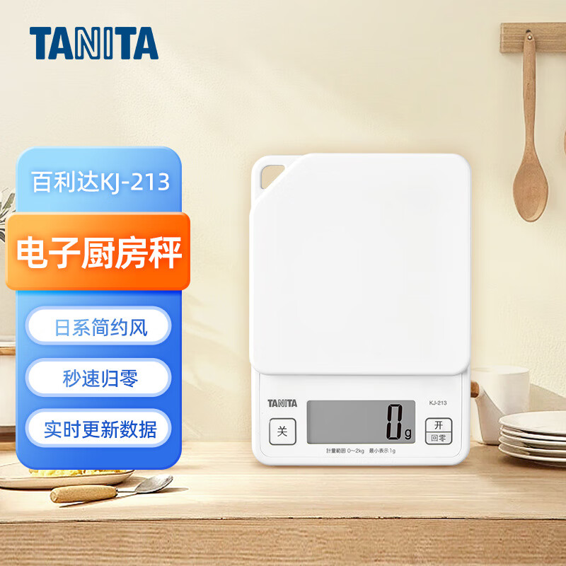 百利达(TANITA)KJ-213家用厨房秤 日本品牌可悬挂防滑烘焙电子秤克称 白色价格:105.00元!