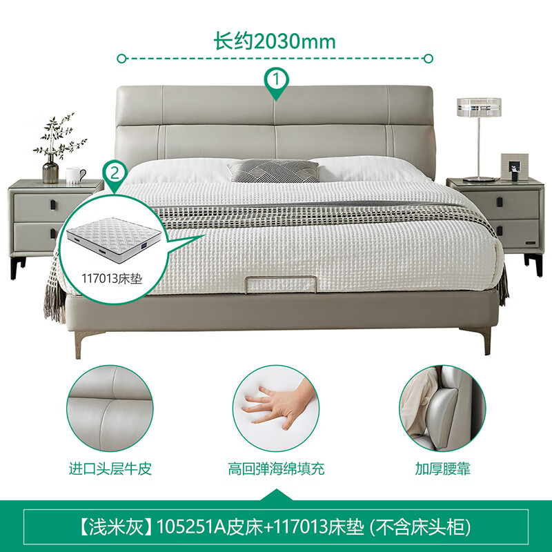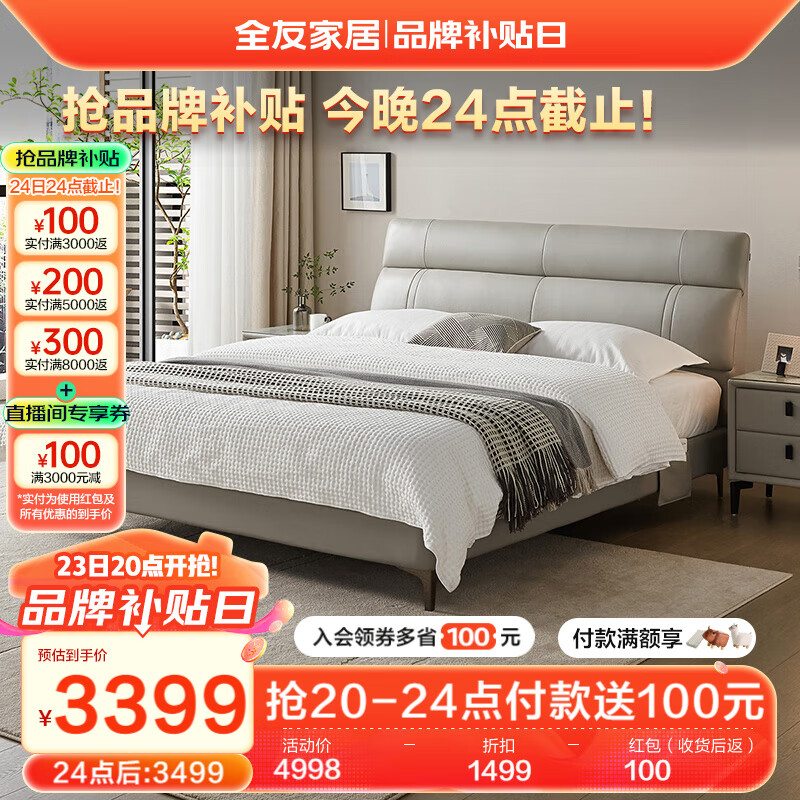 全友家居 头层牛皮现代简约主卧室双人真皮艺软包大床2米2.2米105251价格:4998.57元!