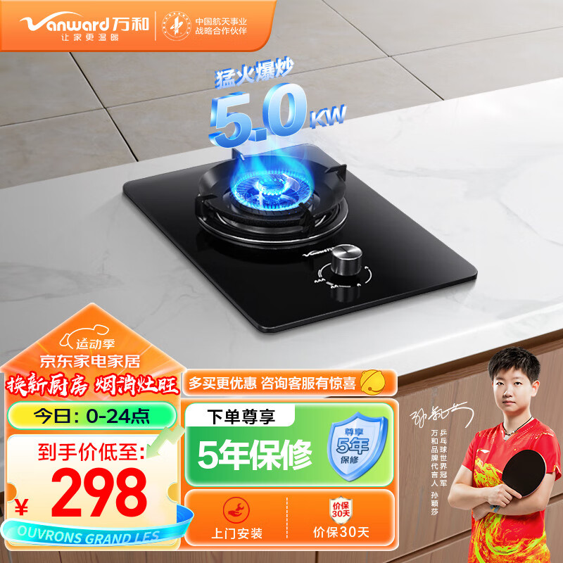 万和 Vanward 钢化玻璃燃气灶单灶具 单眼灶嵌入式 5.0kW大火力 台嵌两用 JZT-E6L90 天然气价格:298.00元!