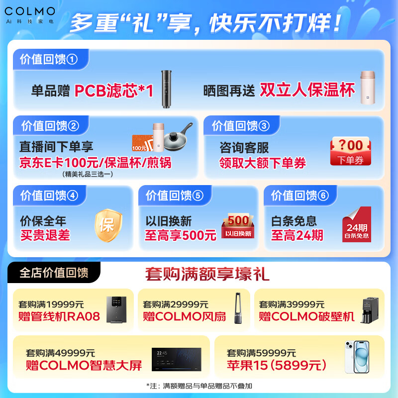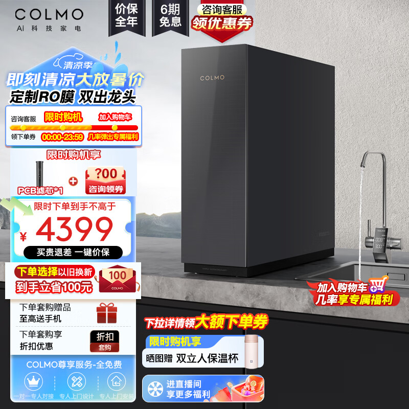 COLMO星云B103净水器厨下式 500G家用净水机厨房净饮机直饮机 4年RO反渗透净水机1.25L/min双出水龙头价格:4398.00元!