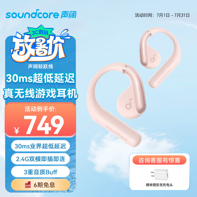 声阔轻跃线云感不入耳蓝牙耳机AeroFit开放舒适佩戴42H续航无线办公运动跑步不漏音适用苹果华为手机粉价格:745.00元!