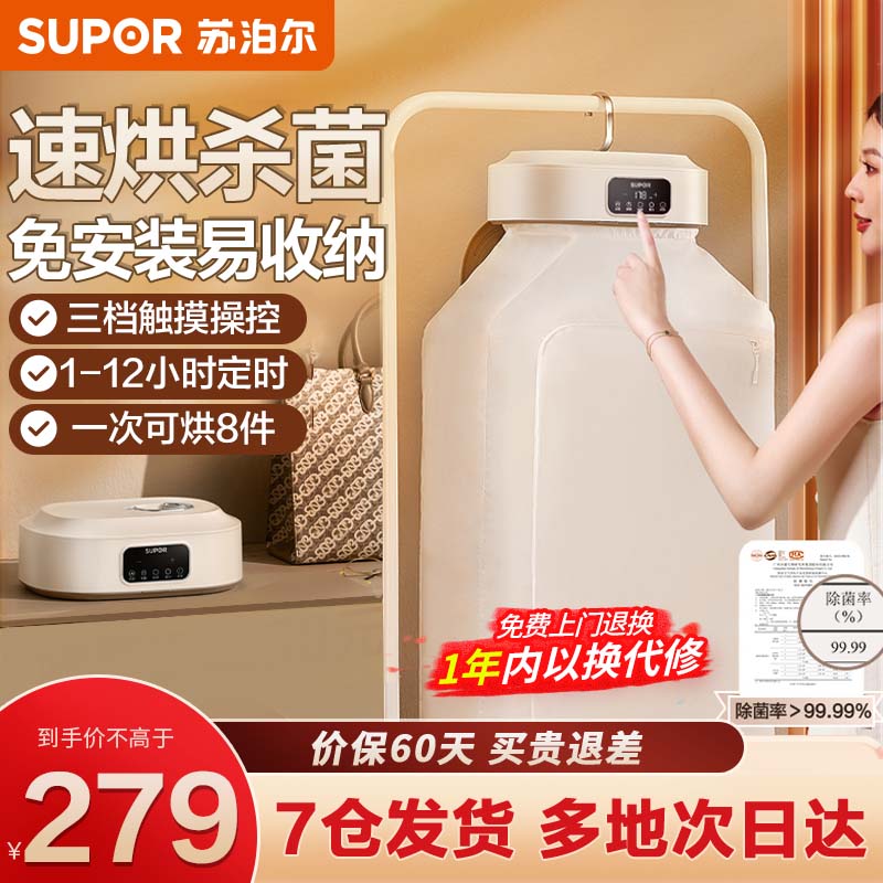苏泊尔干衣机折叠便携式旅行烘干机学生宿舍衣物烘衣机小型挂式 600W收纳折叠旅行款 ELD-520A/B 奶白色价格:279.00元!