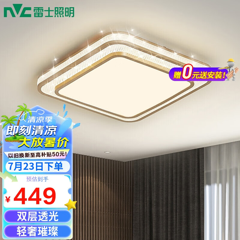 雷士(NVC)LED吸顶灯 轻奢浪漫书房餐厅卧室灯具 时尚双层金边高透光灯饰价格:449.00元!
