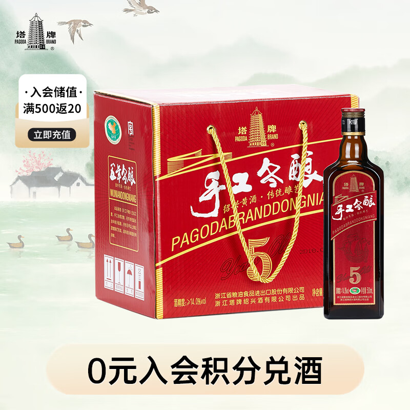 塔牌 手工冬酿五年 传统型半干 绍兴 黄酒 500ml*8瓶 整箱装价格:168.00元!