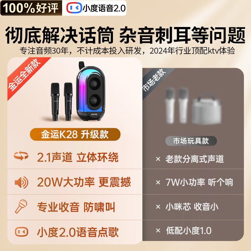 金运【小度语音】话筒音响一体自带声卡k歌麦克风家庭ktv音响套装无线蓝牙音箱唱歌神器一体式机儿童价格:298.00元!