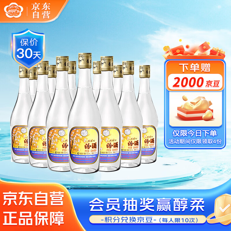 汾酒 出口玻汾 清香型白酒 53度 750ml*12瓶 整箱装价格:1380.00元!