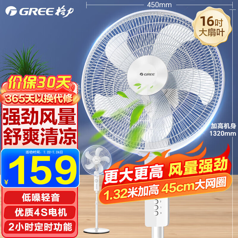格力(GREE) 电风扇家用节能落地扇学生立式大风量客厅宿舍机械五叶扇 FD-4012 白色价格:159.00元!