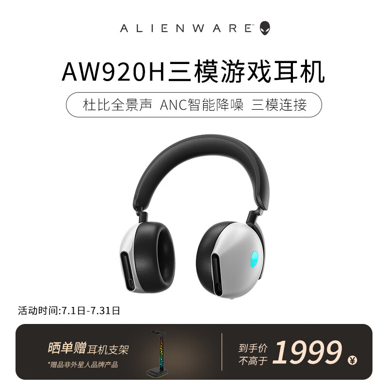 外星人(Alienware)AW920H三模游戏耳机蓝牙耳机 头戴式电竞耳麦 有线无线蓝牙智能降噪杜比全景音 送男友送女友白色价格:1999.00元!