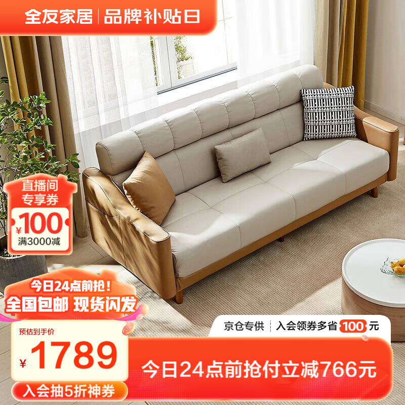 全友家居 沙发床北欧简约科技布沙发三人位可折叠两用沙发床111015价格:2555.71元!