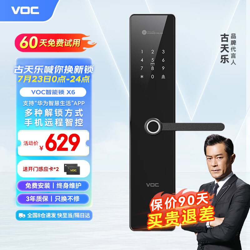 VOC 指纹锁智能门锁防猫眼密码锁电子锁C级锁芯家用防盗门锁入户门X6 支持“华为智慧生活”APP价格:899.00元!