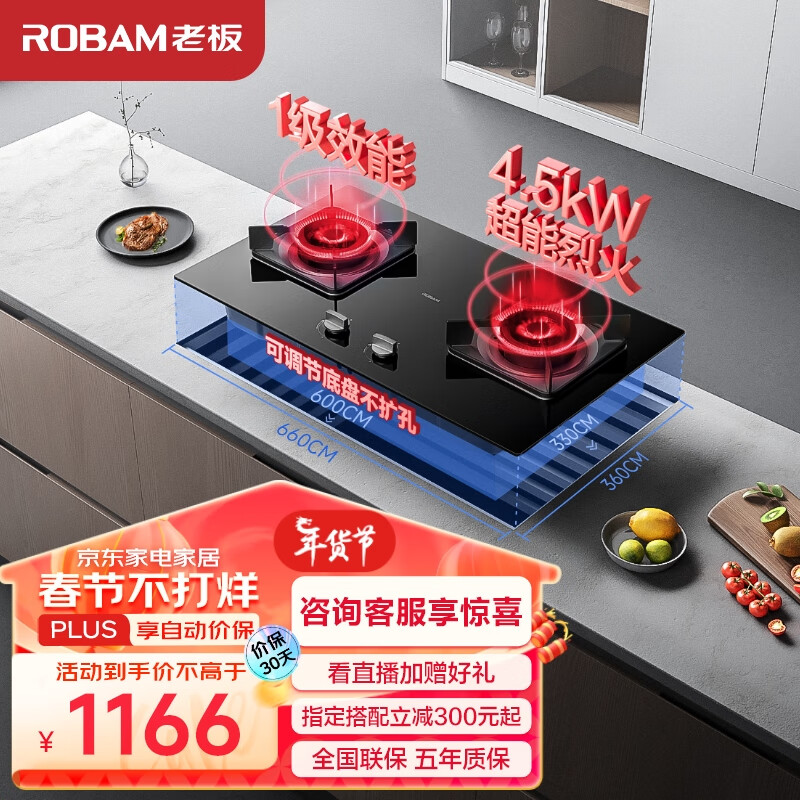 老板(Robam)燃气灶天然气灶双灶嵌入式 4.5kW小尺寸换装可调节灶具灶台 易洁台嵌两用高效猛火灶家用JZT-30B6D价格:1155.00元!