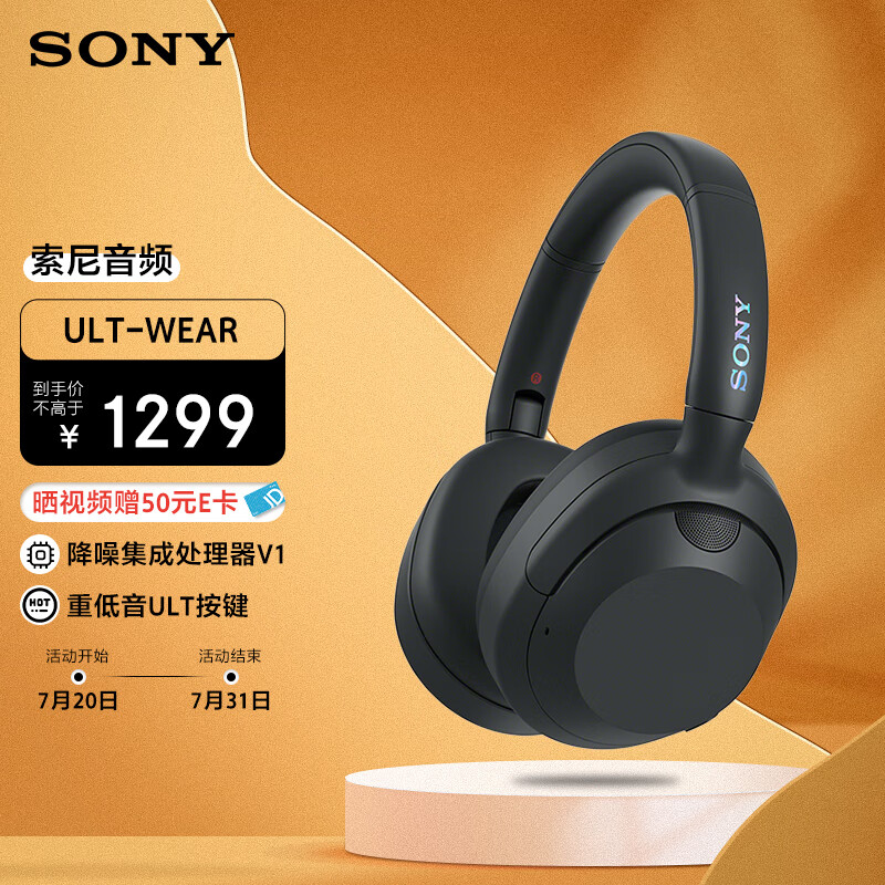 索尼(SONY)ULT WEAR 重低音头戴式降噪蓝牙耳机(WH-ULT900N) 黑色价格:1299.00元!
