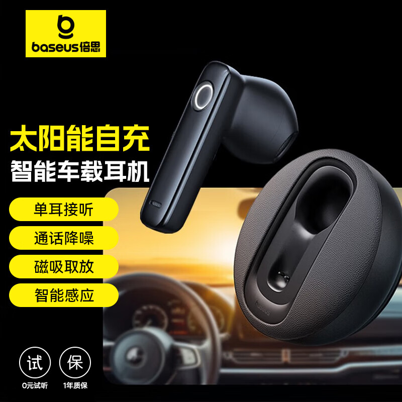 倍思 蓝牙耳机商务开车驾车车载单耳单边半入耳式超长续航无线通话降噪车用耳机oppo苹果华为 CM10黑价格:185.00元!