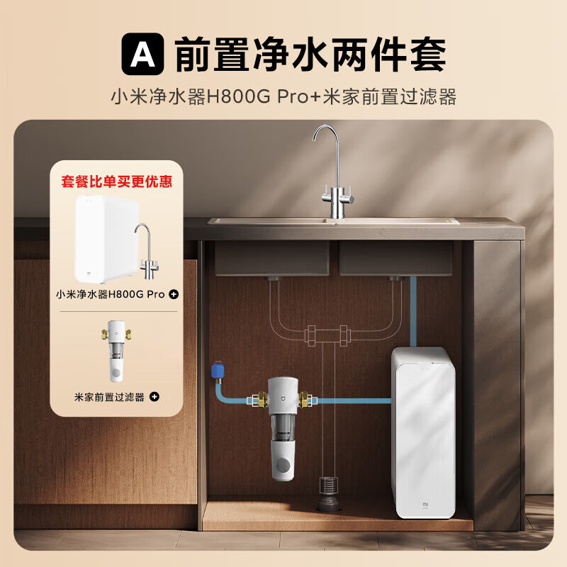 米家【净水+前置】净水器H800G Pro+前置过滤器 小米净水器套装A价格:1748.00元!