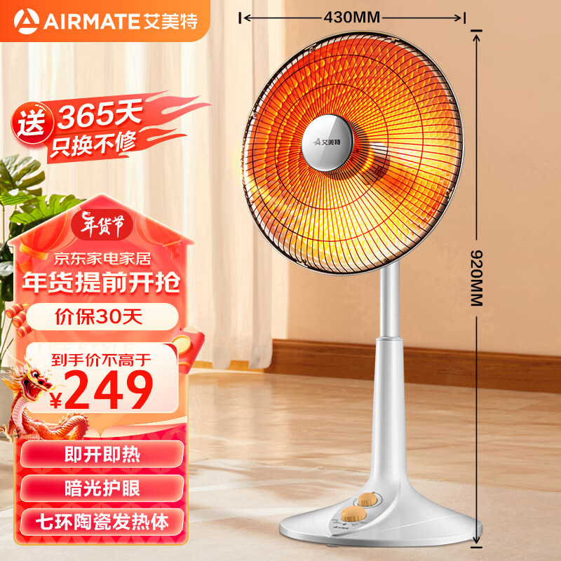 艾美特(AIRMATE)取暖器/小太阳/电暖器家用/鸟笼子电热暖气 92厘米台立两用高度可调节定时暖气扇烤火炉 HF1214T-W价格:249.00元!