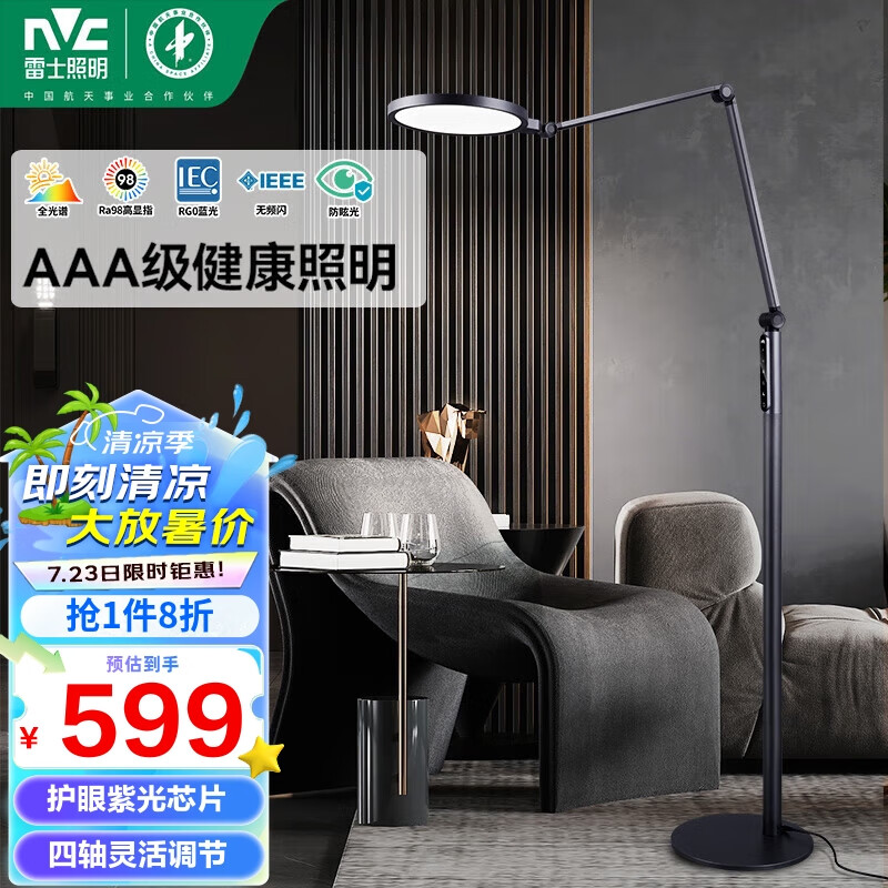 雷士(NVC)护眼台灯阅读儿童学习便携折叠落地台灯宿舍学生七档调光定时价格:749.00元!