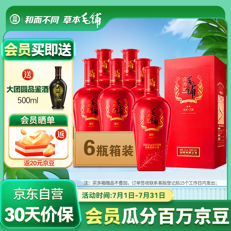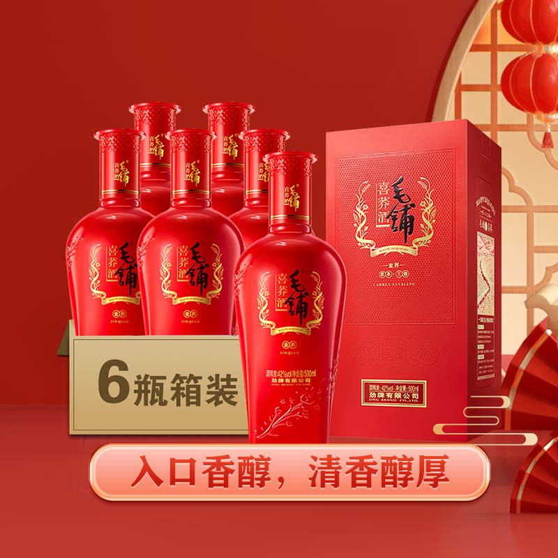 劲牌 毛铺苦荞酒 喜荞酒金荞 42度 500ml*6瓶 整箱装价格:528.00元!