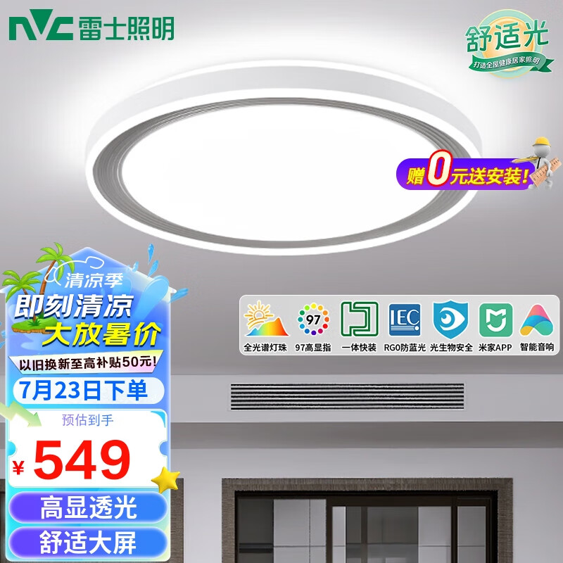 雷士(NVC)LED吸顶灯现代简约客厅卧室书房餐厅灯米家快装小白灯沐雅圆灯价格:549.00元!