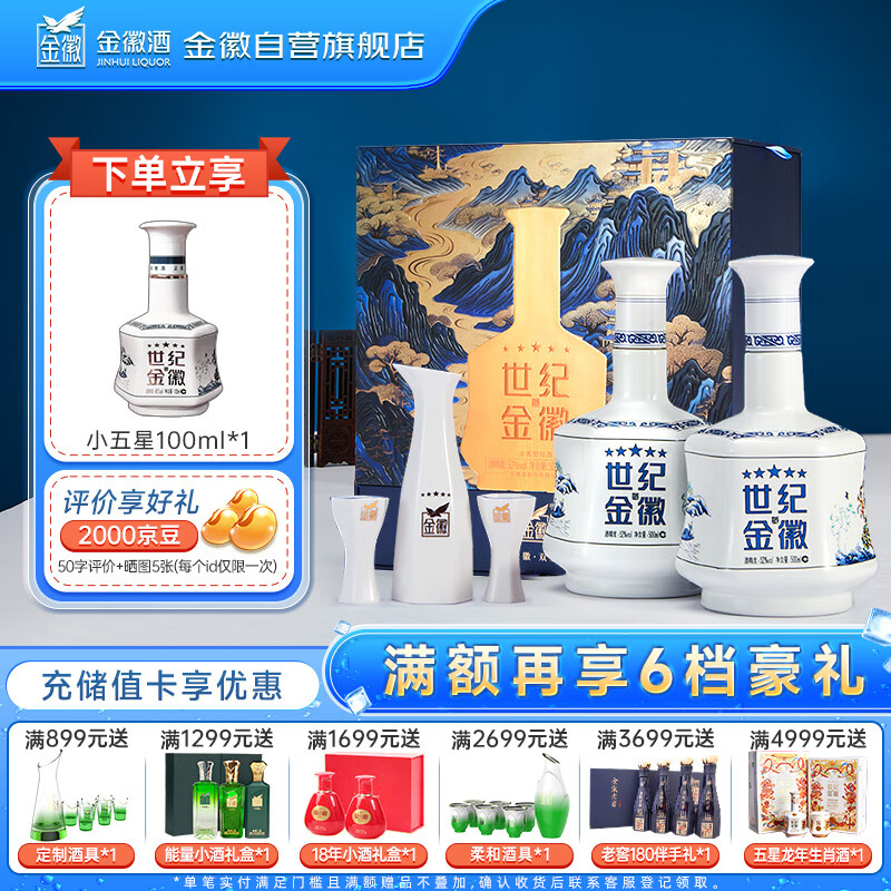 金徽 世纪金徽五星 浓香型白酒 52度 500ml*2瓶 礼盒装价格:442.00元!
