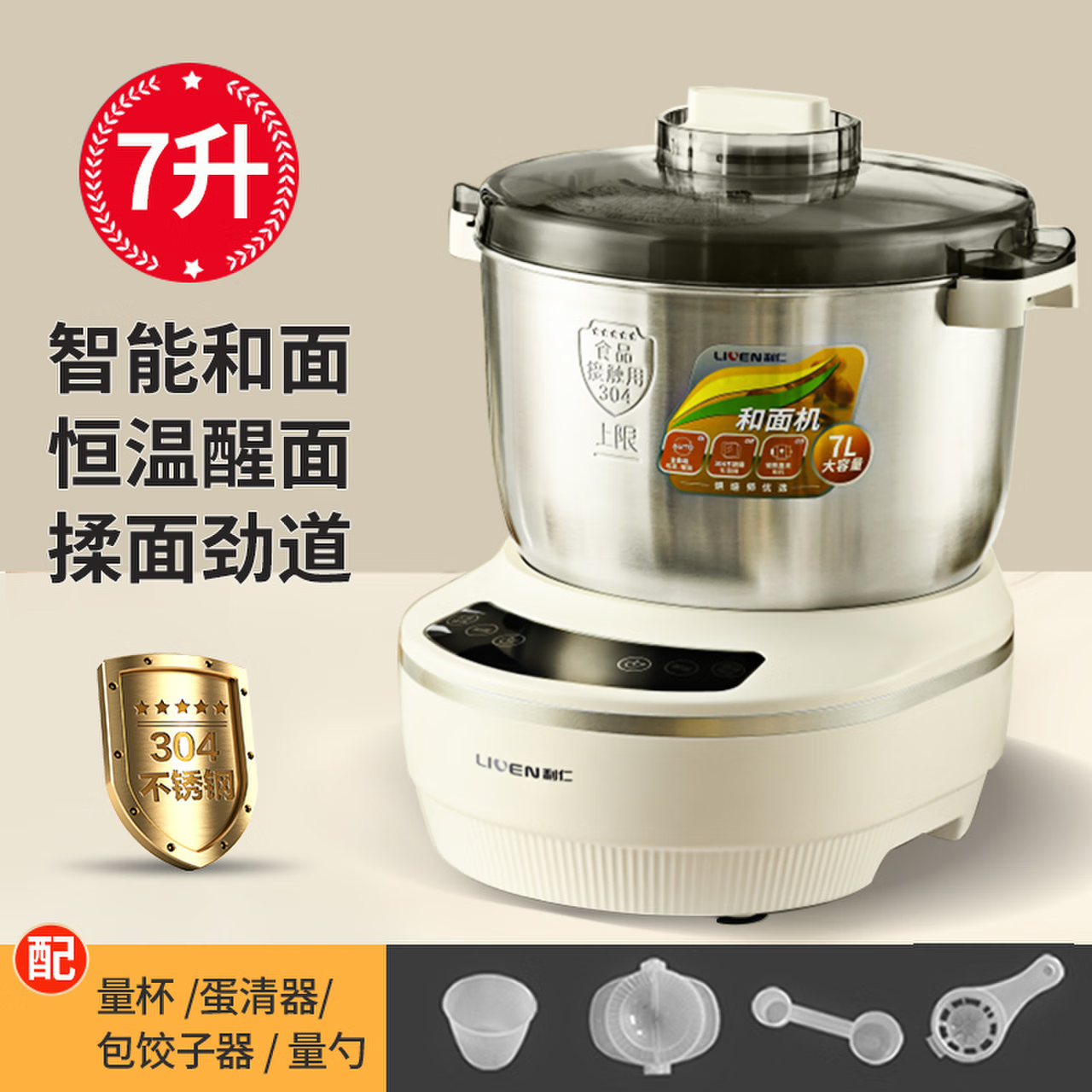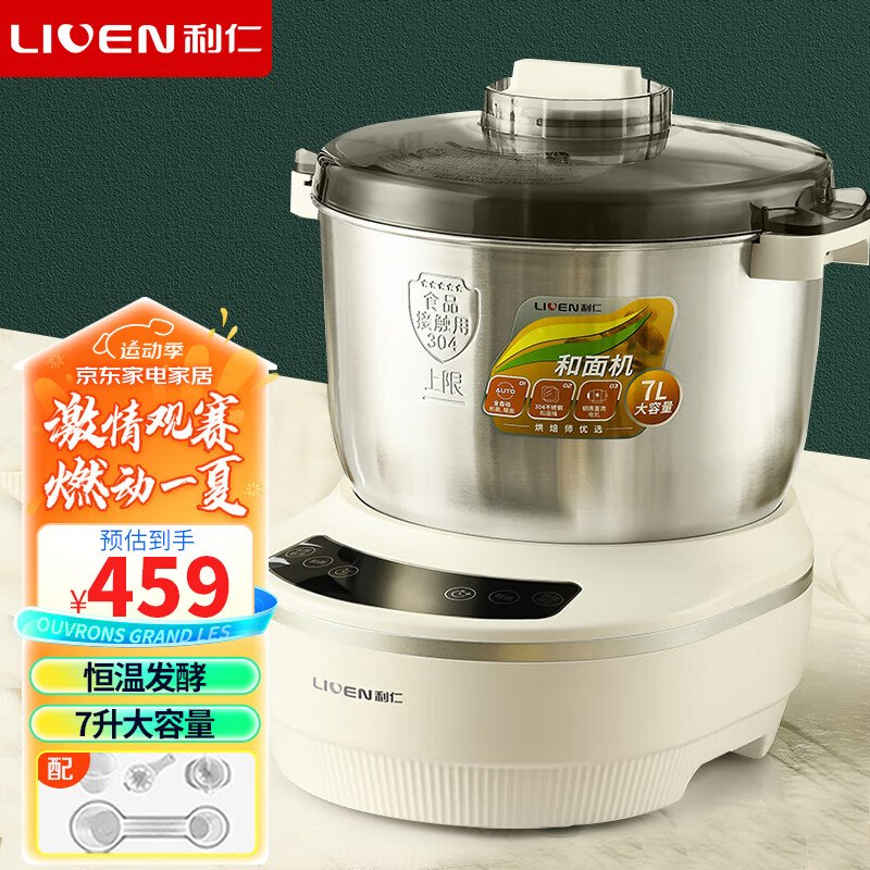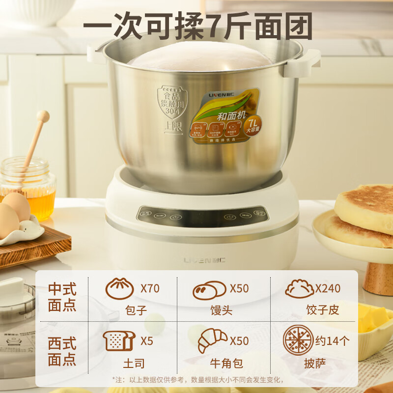 利仁(Liven)和面机家用揉面机厨师机全自动搅面机多功能智能醒面发面机面包面粉搅拌机大容量活面机7升 HMJ-D7价格:499.00元!