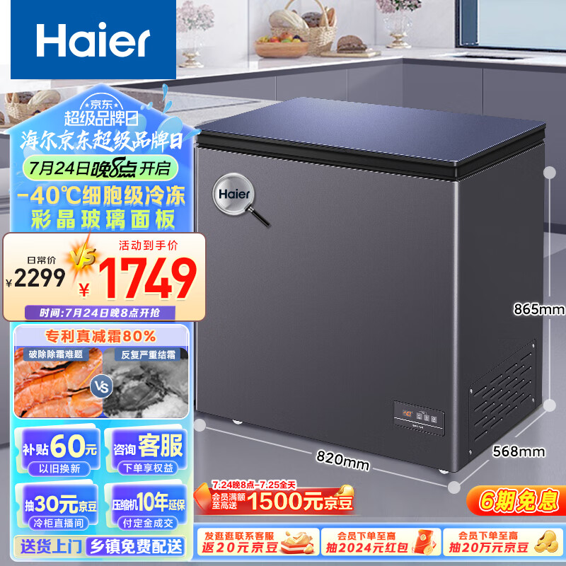 海尔(Haier)200升-40℃彩晶低霜小冰柜家用商用 冷藏柜冷冻柜冰柜小型小冰箱小型冷柜BC/BD-200GHEPGD以旧换新价格:1749.00元!
