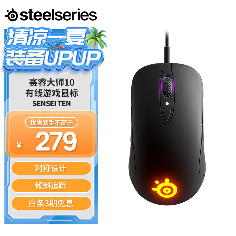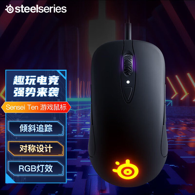 赛睿(SteelSeries)大师系列Sensei Ten 有线鼠标 电竞游戏鼠标 8键可编程 高敏操控 倾斜追踪 UZI推荐 黑色价格:379.00元!