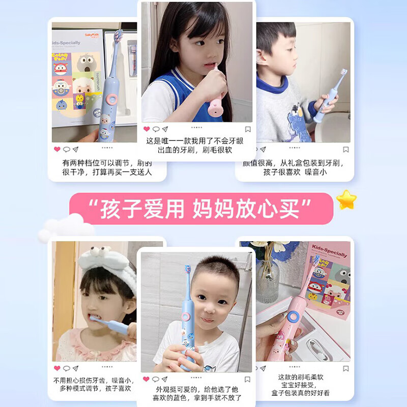舒客儿童电动牙刷声波震动含氟刷丝专业防蛀软毛护龈双重模式F2粉(适用4-12岁)【新年礼物】价格:229.00元!
