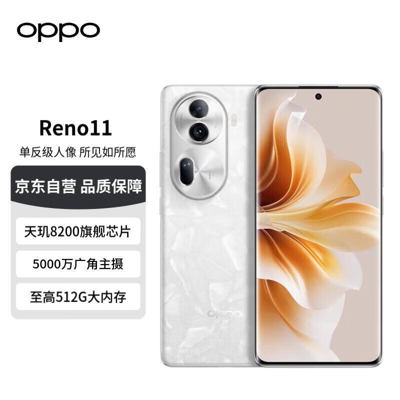 OPPO手机 Reno11 5000万单反级人像三摄 天玑8200 旗舰芯 长续航 12GB+512GB 月光宝石价格:2799.00元!
