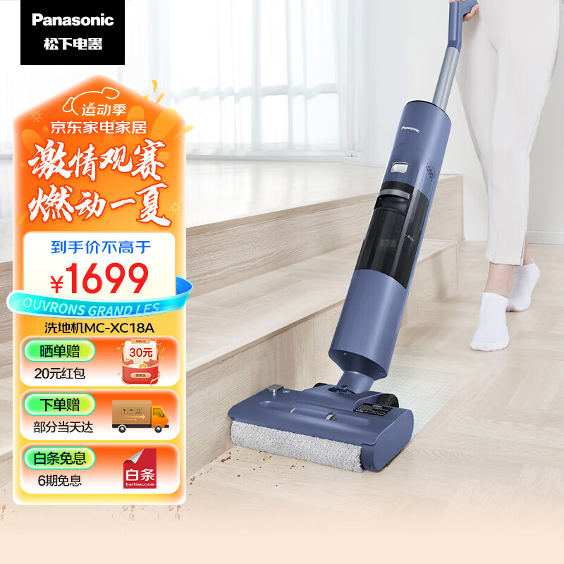 松下(Panasonic)洗地机无线智能 LED家用扫地机吸拖一体手持吸尘器MC-XC18A价格:1699.00元!