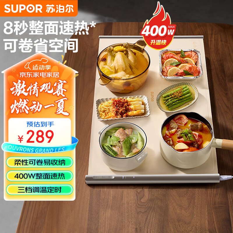 苏泊尔折叠暖菜板 饭菜保温板热菜板 加热桌垫菜板 柔性面板解冻温奶保温板(方形) BF6040R830D价格:289.00元!