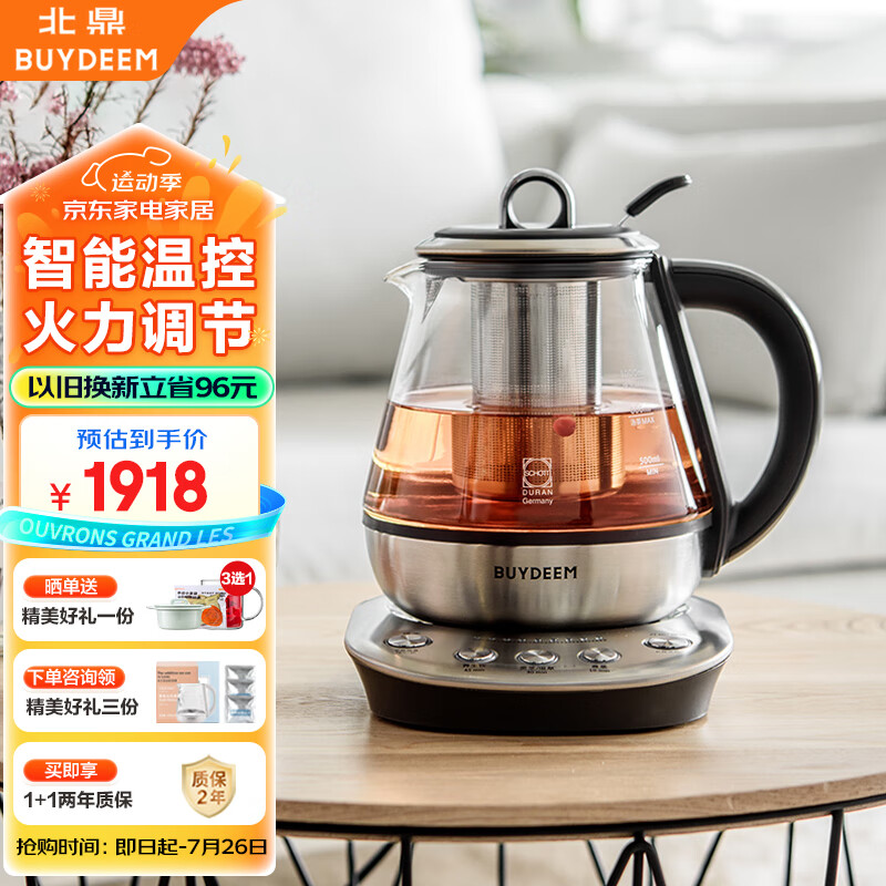 北鼎(Buydeem)养生壶 玻璃 煮茶器电热水壶 多功能 花茶壶烧水壶中药壶 K21曜石黑价格:1918.00元!