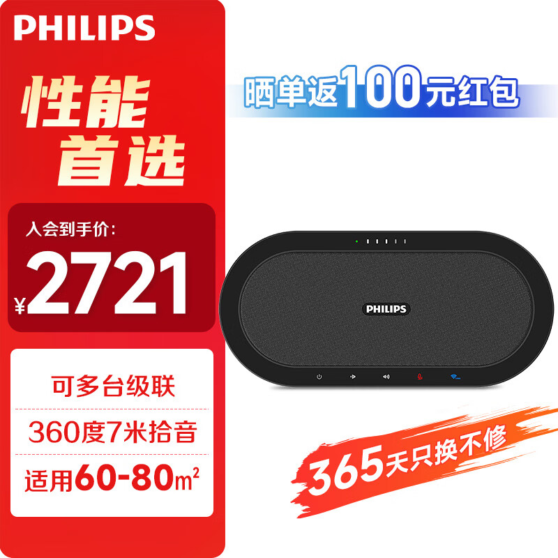 【点击查看飞利浦飞利浦 视频会议全向麦克风 免驱5.8G无线/蓝牙 桌面扬声器 (适用40平米以内会议室)6米拾音扬声器 带电池活动分享】