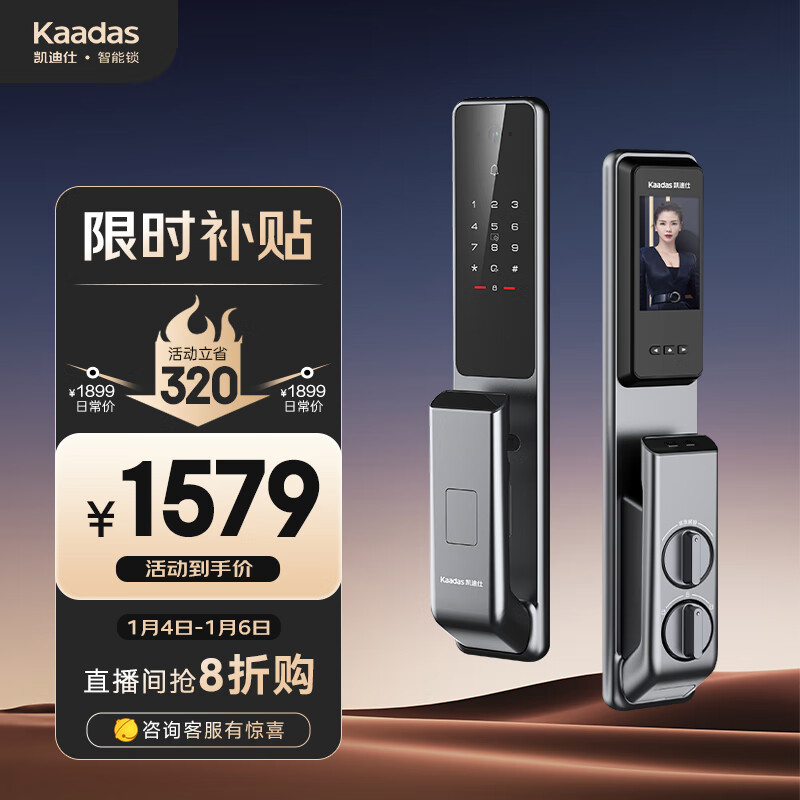 凯迪仕(kaadas) 指静脉全自动智能锁Z1Pro升级版 安防监控视屏智能门锁 密码锁价格:1579.00元!