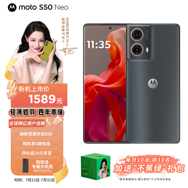 摩托罗拉 联想moto S50 Neo 四年质保 高级时尚 应用六开 5000mAh超薄长续航 5GAI手机 12+256GB 即墨价格:1599.00元!