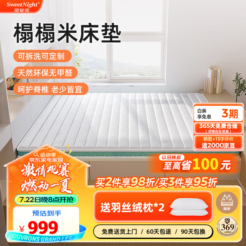 Sweetnight榻榻米床垫天然椰棕床垫8cm床垫子 可定制 甜秘密丹左B款 1.2x2米价格:999.00元!