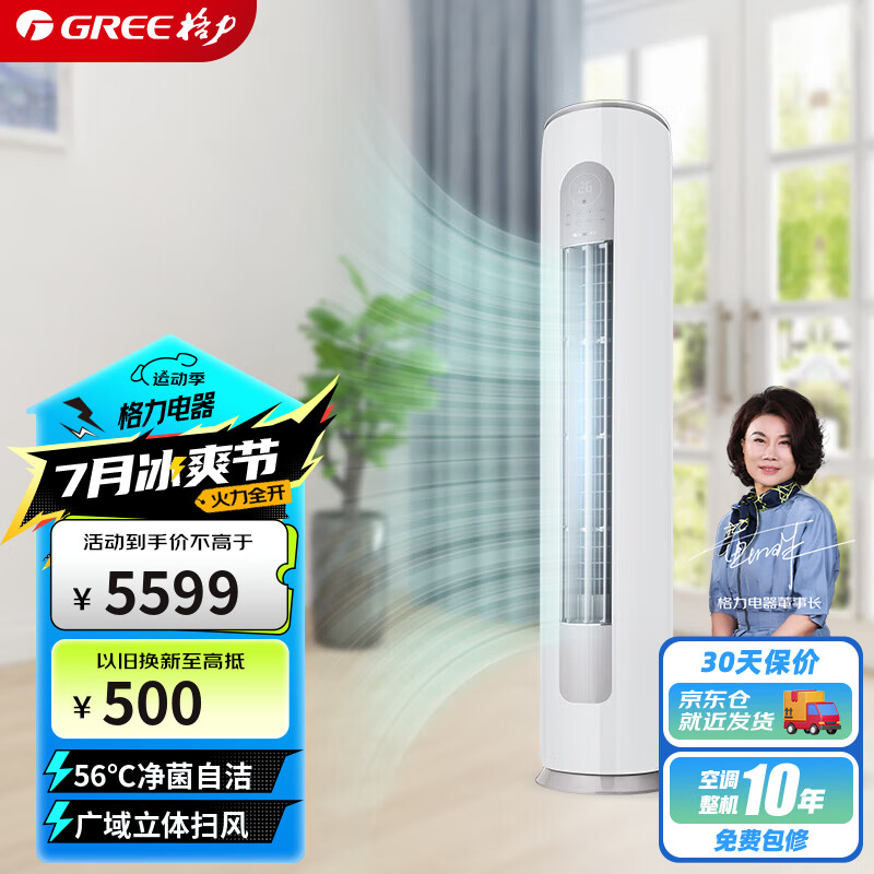 格力(GREE)2匹 京秀 三级能效 变频冷暖 宽幅送风 立柜式空调柜机 KFR-50LW/(50587)FNhAa-B3价格:5599.00元!