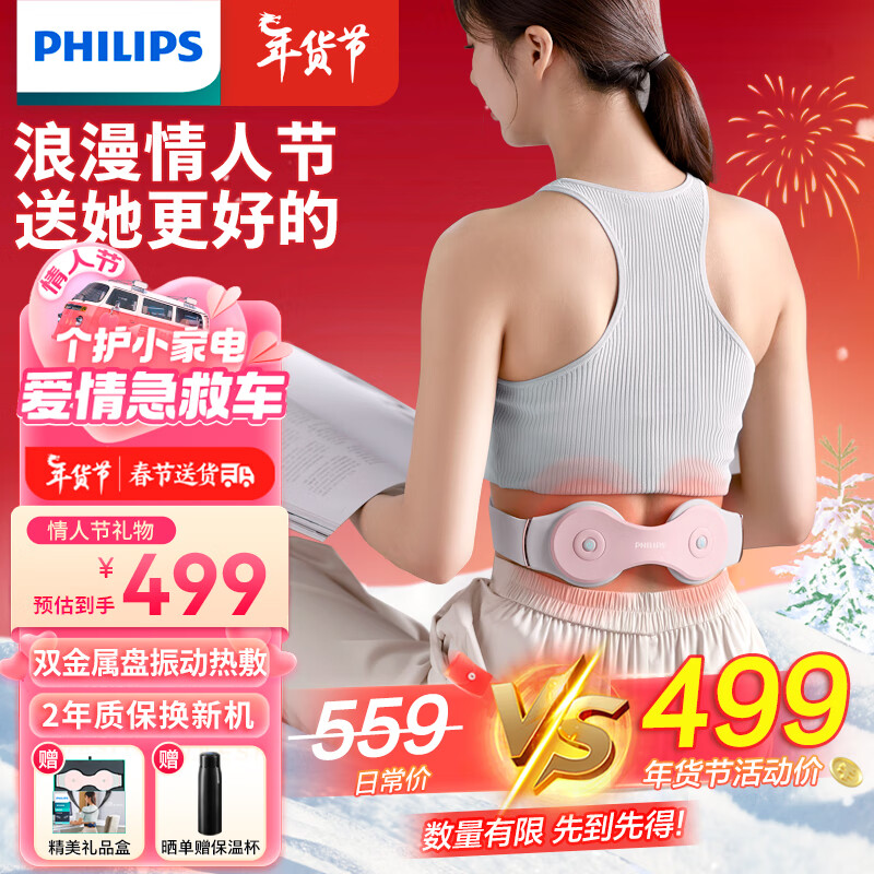 飞利浦(PHILIPS)腰部按摩器 腰椎热敷仪多档振动腰带热敷舒缓腰部按摩仪暖宫腰带 3208B粉 情人节礼物送女友送妈妈价格:559.00元!