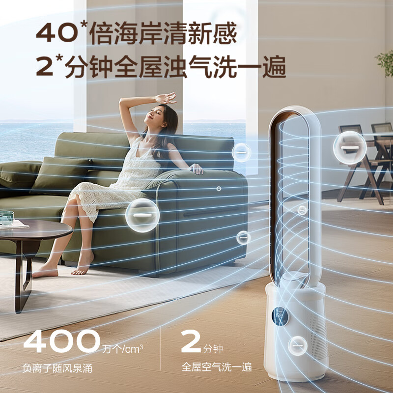 艾美特(AIRMATE)负离子净化无叶塔扇家用24档直流变频轻音省电自然风柔风塔扇大风量摇头落地式循环风扇 CE-RI7价格:699.00元!