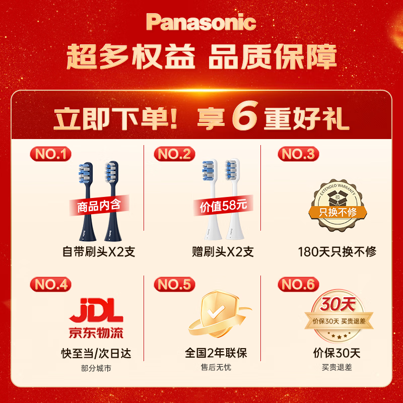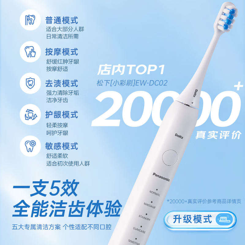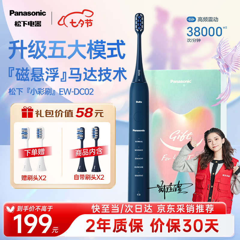 松下(Panasonic)电动牙刷牙医推荐小彩刷情侣款软毛成人磁悬浮声波震动清洁护龈七夕情人节情侣礼物送对象DC02蓝色价格:199.00元!