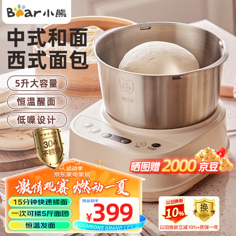 小熊(Bear)和面机家用 揉面机 厨师机 全自动多功能智能和面搅面机 面包面粉发酵醒面HMJ-A50N1价格:399.00元!