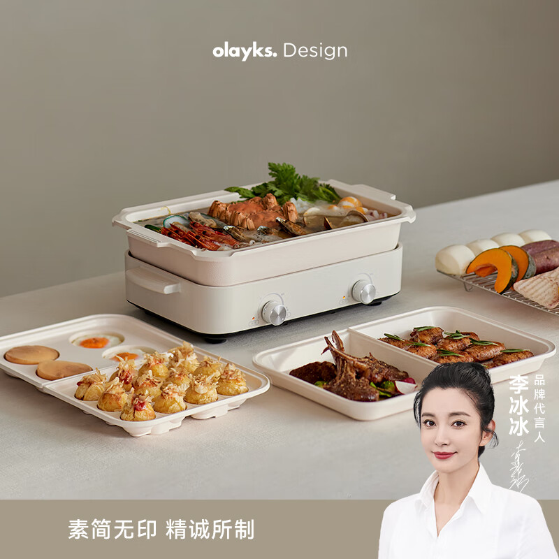 olayks立时 多功能料理锅烤涮煎煮一体锅家用3.5L火锅分体式烤盘烧烤鱼烤肉多用途锅高配价格:549.00元!