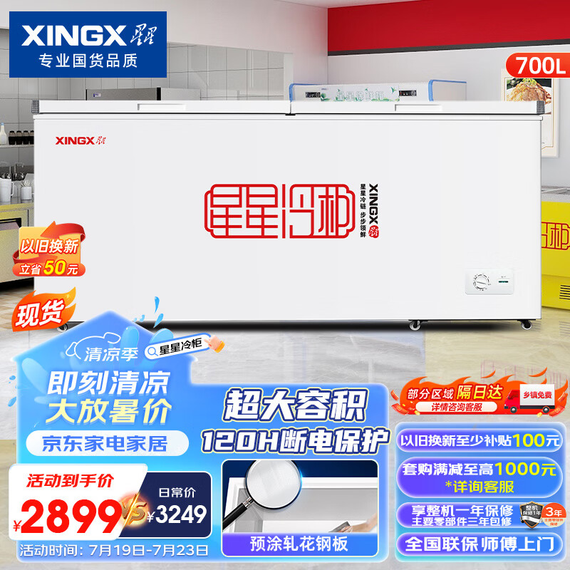 星星(XINGX) 700升 商用大容积卧式单温冰柜 冷藏冷冻转换冷柜 单箱变温冰箱 BD/BC-700R价格:2899.00元!