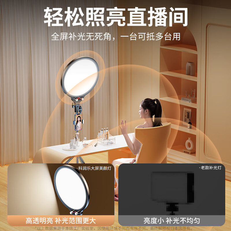 科润乐【面部遮瑕补光】直播补光灯全套摄影拍摄面部打光led拍照主播直播间专业柔光美颜视频桌面全屏价格:168.00元!
