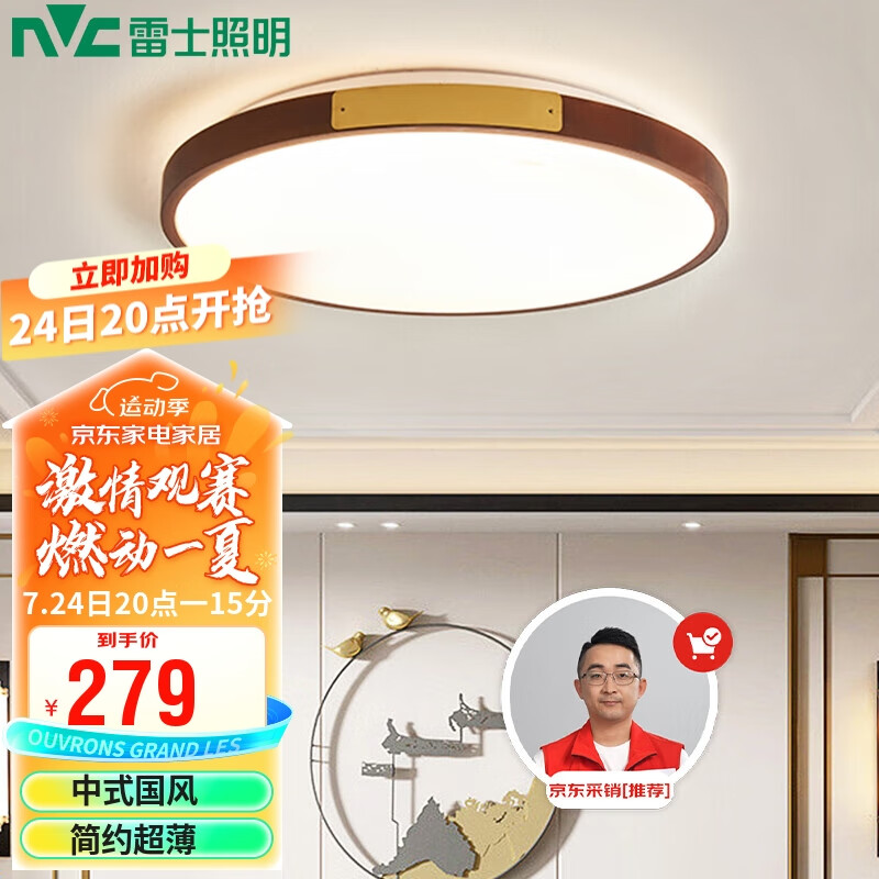 雷士照明(NVC)新中式简约卧室客厅led吸顶灯木艺中国风三色调光24w瓦数圆形价格:359.00元!