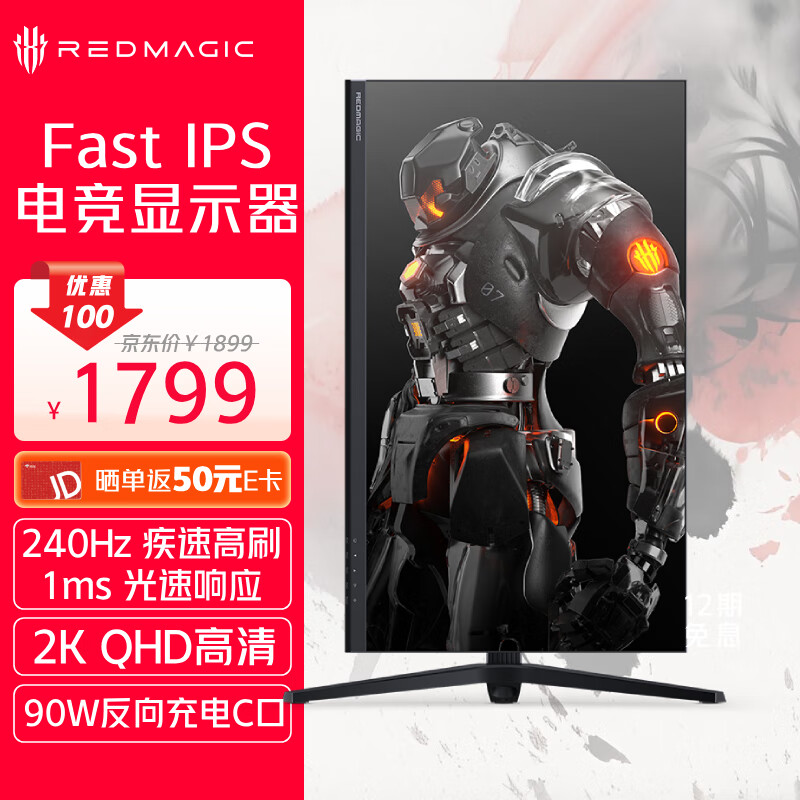 努比亚(nubia)红魔电竞显示器2K高清 27英寸 FastIPS 240Hz 1ms GTG响应 90W TypeC反向充电 游戏家用办公价格:1899.00元!